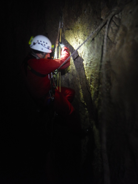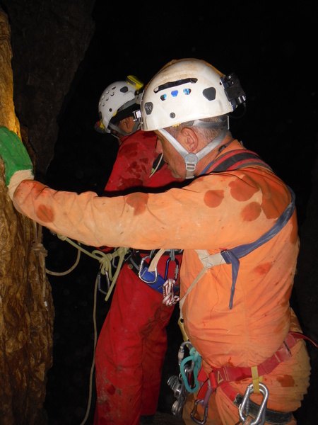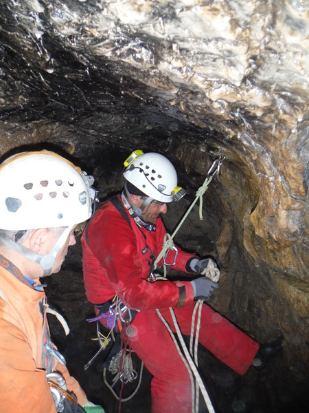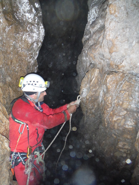 Visto che siamo con le mani in pasta sistemiamo l’armo sulla destra del pozzetto prima dello scivolo di fango