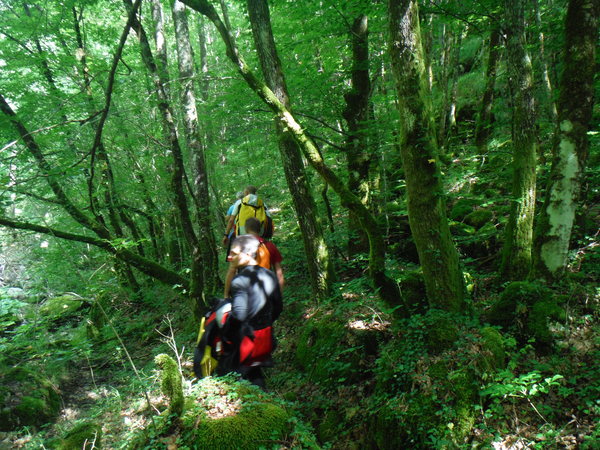 e si prosegue per il sentiero costeggiando il fiumiciattolo, che, se si ha abbastanza pazienza, diventera’ la nostra la nostra forra.