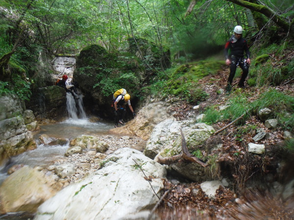Ancora qualche piccolo salto ma si inizia a poter camminare a fianco del corso d’acqua.