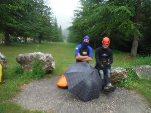 Arriviamo all’arrivo. Piove generosamente oramai da circa mezz’ora. I driver si cambiano velocemente e vanno a recuperare la macchina alla partenza. L’attesa sotto la pioggia perche’ le macchine ritornino a prenderci e’ il giusto coronamento per una giornata in acqua. Per fortuna il tempo e’ stato clemente con noi, quasi contemporaneamente al ritorno delle macchine e’ tornato un bel sole tiepido.