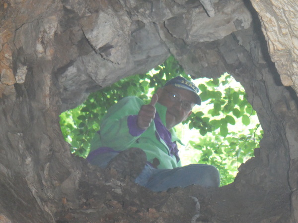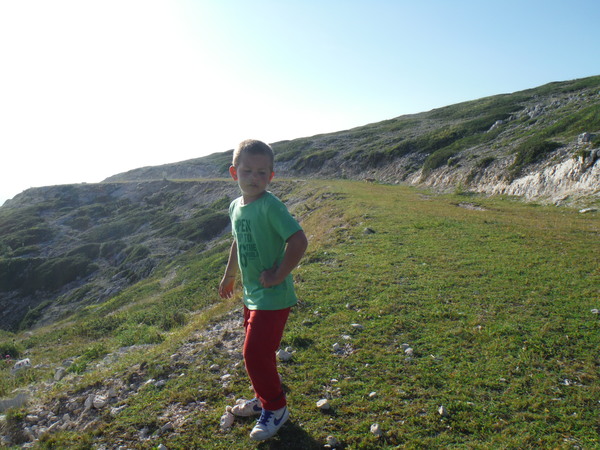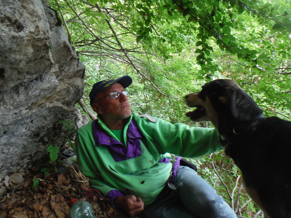 Noi invece torniamo indietro sempre con un occhio all’ingresso della grotta. Niente, non riesco a trovarla! Ce ne torniamo alla base con le pive nel sacco. Ecco il mio giovane accompagnatore, Cristian