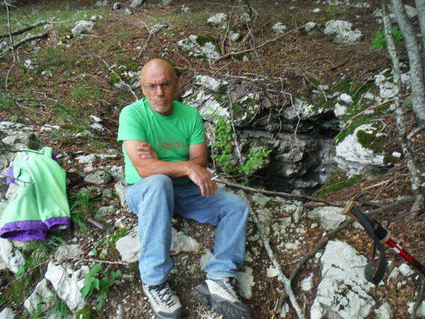 Eccoci al pozzo di Capodanno, mentre ci riposiamo un po’ Tarcisio me ne racconta la storia. Hanno scavato per anni il notevole buco che si vede alle sue spalle nella foto quando un giorno…