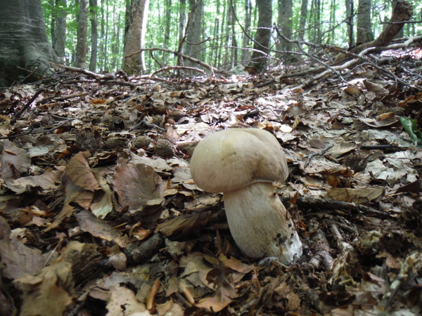 Da li’ riprendiamo la risalita per ritornare al campo. Strada facendo trovo addirittura un bel porcino! Lo fotografo e lo lascio li’ per qualche fortunato cercatore di funghi.