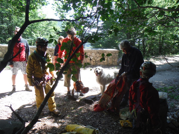 Il cane del nostro scout vorrebbe seguire il padrone ma saggiamente desiste di fronte alla strettoia