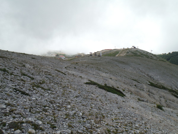 Sono salito parecchio si iniziano a vedere di nuovo gli impianti e qualche costruzione, inizia a scendere un po’ di nebbia