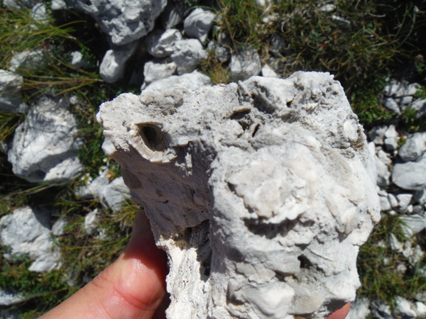 Un sasso che sembra contenere dei fossili, se ci fosse l’esimio Ersimio potrei chiedergli lumi, devo accontentarmi di fotografarlo!
