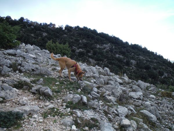 Eccoci arrivati alla fine della strada carrabile. Luna si lecca i baffi soddisfatta.
