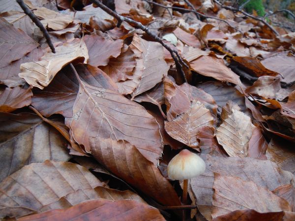 Non posso non dedicare una foto a questi minuscoli ma enormemente simpatici funghetti. Ora fa caldo, approfitto della sosta per togliermi il K-way ed il cappelletto. Maurizio, poco indietro ha avuto la mia stessa idea.