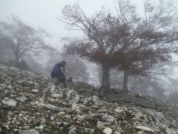 Proseguiamo per l’ultimo cavone. Siamo vicini alla cresta, c’e’ foschia, vento ed inizia a fare freddino.