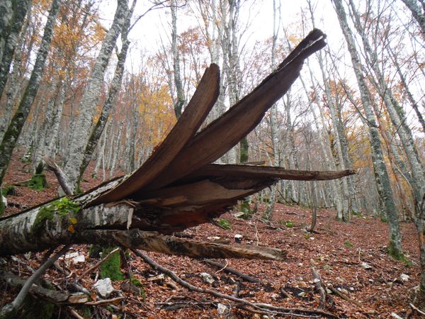 Questo albero deve essersi schiantato con molta violenza, sembra quasi esploso.