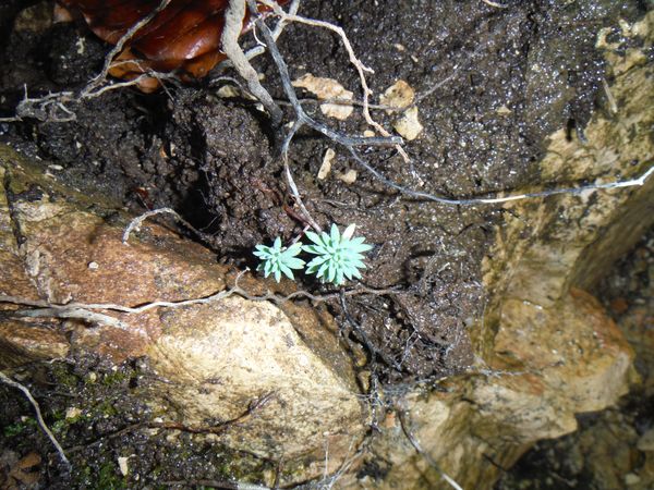 Aspettando Maurizio fotografo queste coraggiose foglioline di nonsochecosa. Gli racconto un po’ la storia delle esplorazioni di questa grotta e poi gli propongo di fare uno spuntino visto che e’ mezzogiorno.