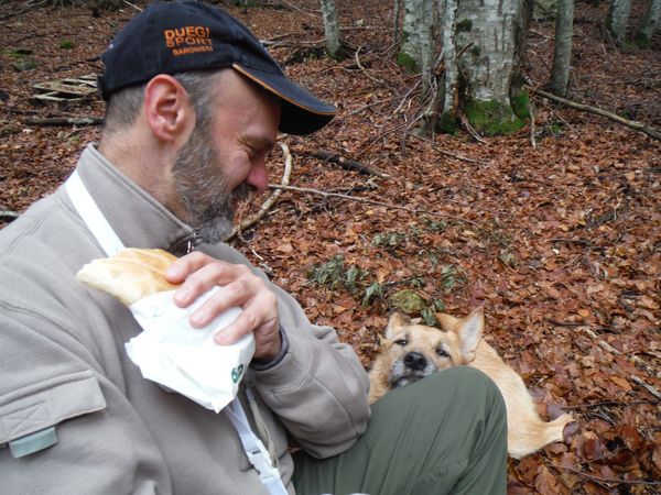 Ci fermiamo ad una delle rampe per fare pranzo, D’altronde le 2 del pomeriggio sono passate da un po’. Luna fa la svenevole con Maurizio per strappargli un pezzetto di prosciutto cotto. A fine pasto Maurizio tira fuori dallo zaino un pocket-coffee, e’ proprio quel che ci vuole per terminare degnamente il pranzo.