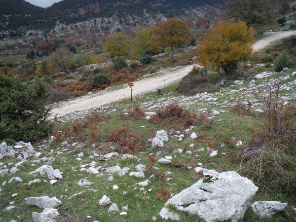 Dopo un bel tratto in salita prendiamo a destra, siamo in una zona brulla, in prossimita’ al cambio di versante. Con la scusa di fare una foto al paesaggio mi fermo a riprendere fiato.
