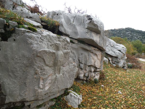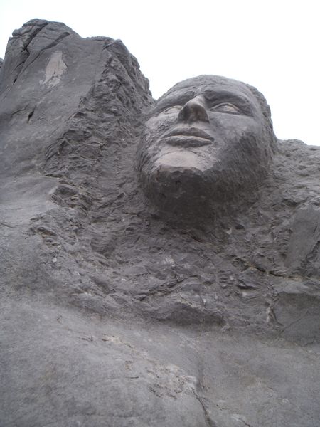 Passiamo davanti alle sculture sulla roccia. Credo mi abbiano detto chi e’ il “CL” che le ha scolpite pero’ non ricordo proprio.
