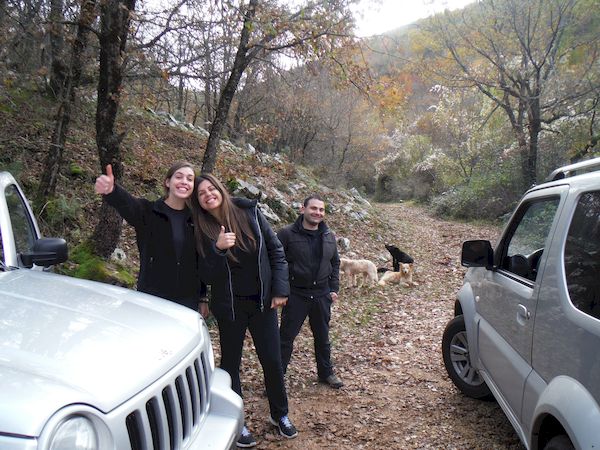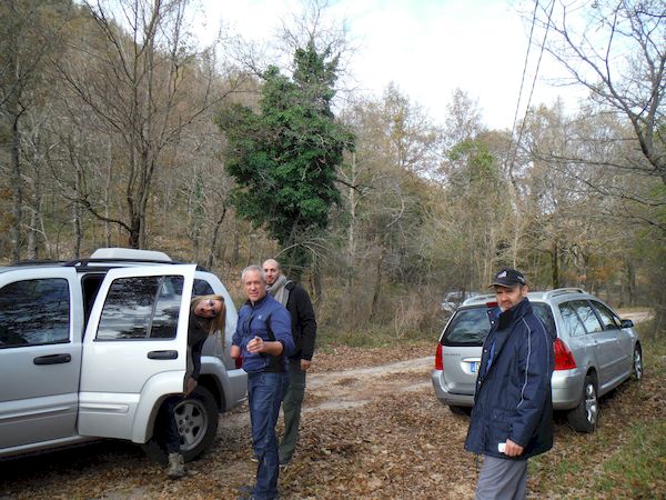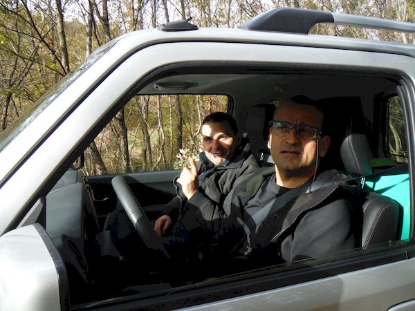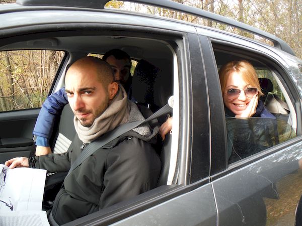 Max fa strada e noi lo seguiamo. Ho il GPS, lo accendo e seguo la strada sul display. Ci fermiamo in corrispondenza di un bivio ma poi proseguiamo dritti ancora per un po’. Ci fermiamo nuovamente, stavolta per cercare parcheggio. La strada prosegue ma e’ percorribile solo con il fuoristrada. Faremo fare la spola a Max e Fabio che sono attrezzati alla bisogna.