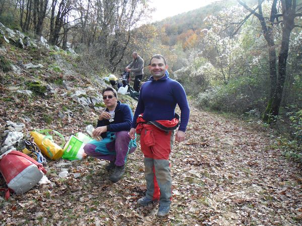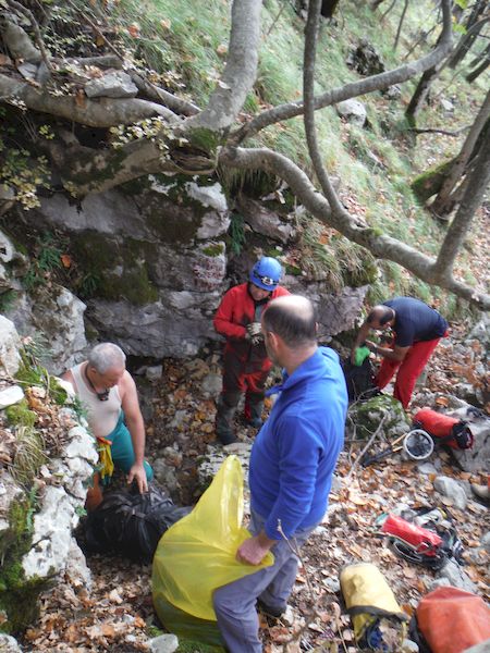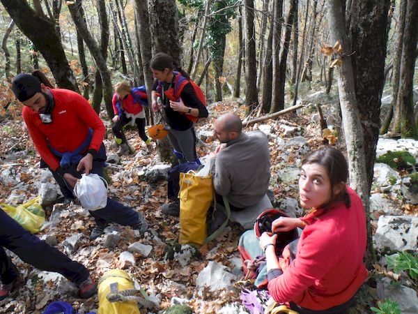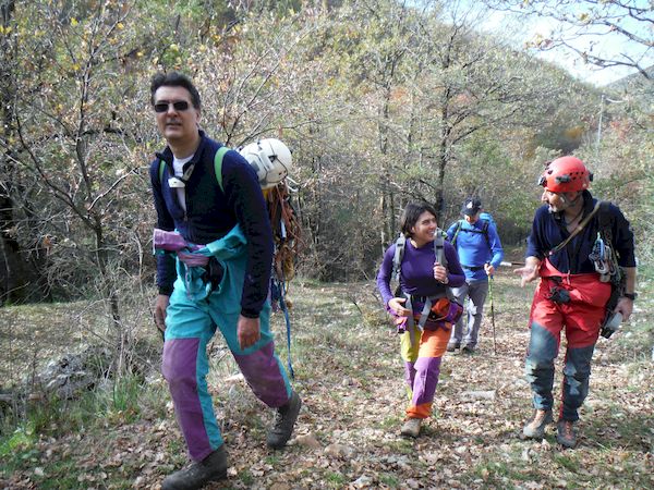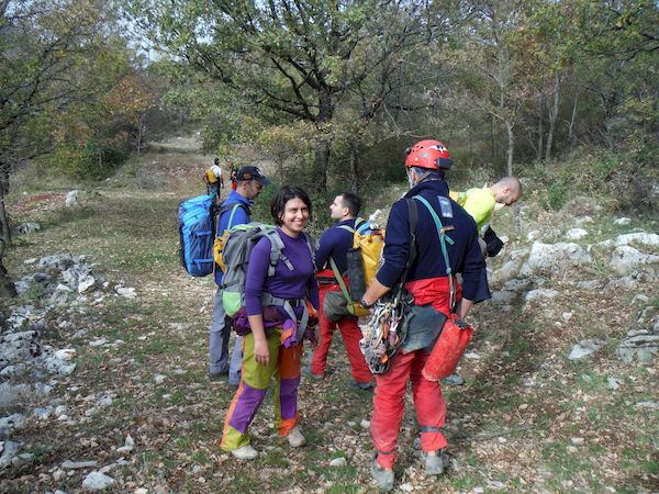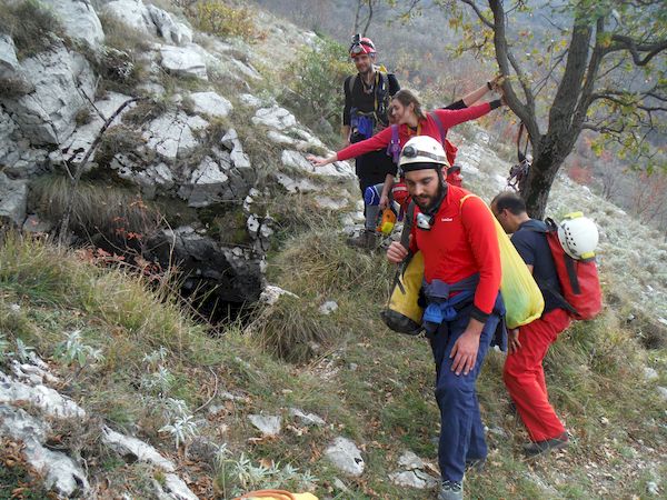 Siamo passati quasi tutti, Stefano azzi ha disarmato il primo pozzo senza particolari problemi. Ora e’ alla partenza del pozzo mentre Lucilla sorveglia la scesa ed il traversino.
