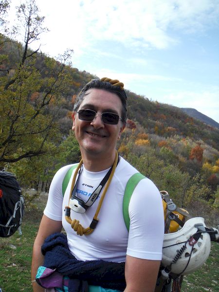 Alberto dopo aver sceso la fessura verticale. E’ particolarmente contento perche’ si era convinto di non passarci.