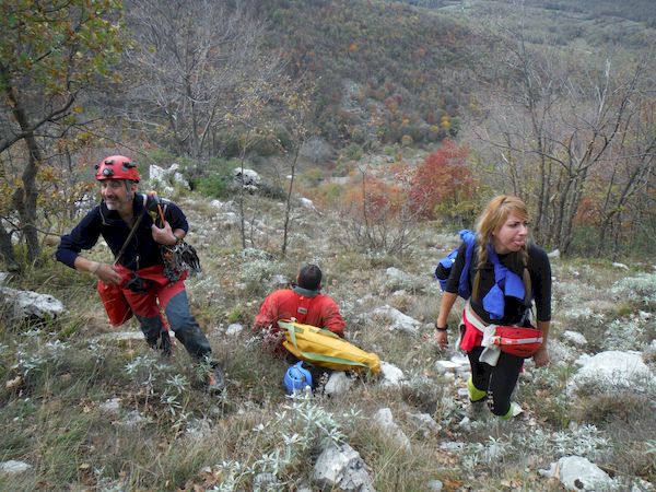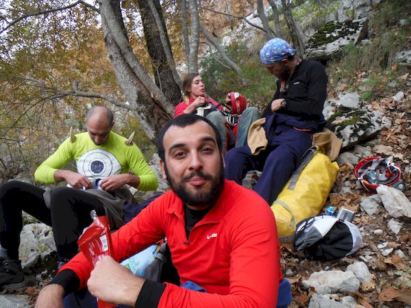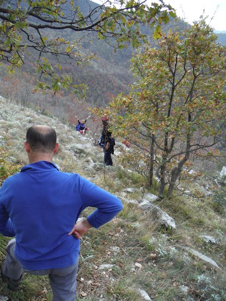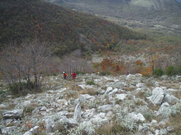 Il gruppo, provato dall’erta pietrosa, si sfilaccia.