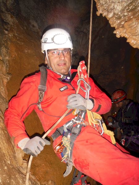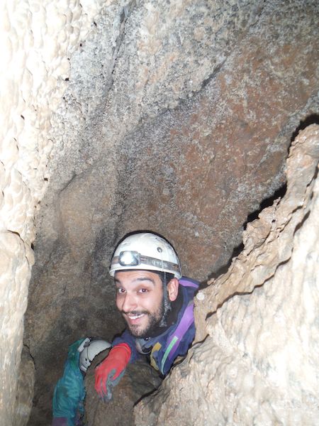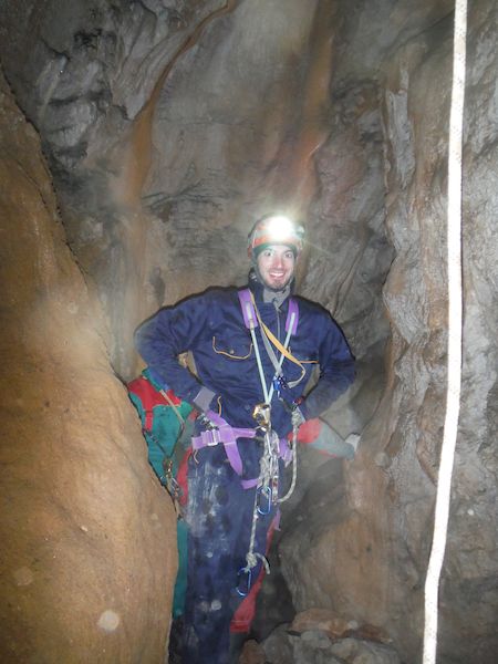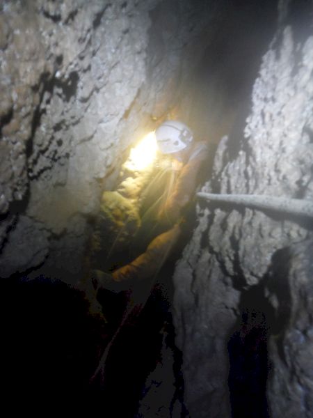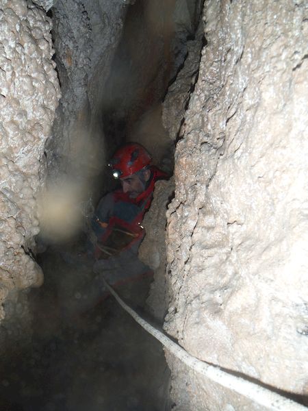 Sono io nascosto in una nicchia cercando di non prendermi sassi in testa da parte di chi scende il primo pozzo.