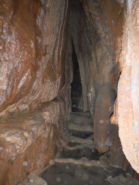 Come al solito alla fine passo anche io e disarmo il tutto. Davanti Max reclama corde e moschettoni. Passiamo tutto avanti e poi procediamo camminando fino al salto successivo. Che strana la parete di sinistra, sembra completamente ricoperta di uno strato di fuliggine. Nemmeno il Fabio, dotto in materia, me ne sa dire il perche’.