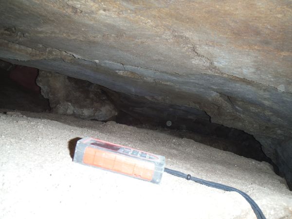 Ci avviamo con calma e pazienza prendendo i punti del rilievo con il Distox. Eccoci nella spaccatura iniziale subito dopo il pozzetto di ingresso.