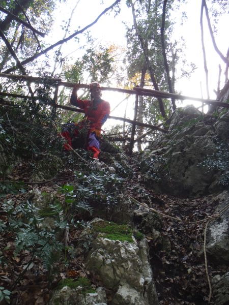 E’ stata una uscita con una gestazione lunga ed una massa di messaggi scambiati per organizzarla veramente impressionante. Alla fine pero’ devo dire che ne e’ valsa la pena. Ne e’ uscita fuori una combriccola tanto allegra quanto eterogenea ed una giornata da ricordare con piacere. Sicuramente c’e’ da ringraziare Stefano che si e’ fatto carico di raggranellare buona parte del molto materiale necessario e di caricarselo dietro dalla sede del gruppo a casa e poi a S. Oreste (senza dimenticare il percorso inverso!). Altro merito di Stefano, ma questo riguarda solo me, e’ che mi ha evitato di prendere la macchina dandomi un graditissimo passaggio. Un motivo in piu’ per festeggiare S. Stefano! Intanto grazie! Dopo questo lungo preambolo sarete curiosi di sentire come si e’ sviluppata la giornata. Ecco quindi che vado ad iniziare. Ci eravamo dati una sequenza di appuntamenti ad un ritmo sicuramente sfidante. Il primo appuntamento lo avevo alle 9.15 a P.zza Bologna con Vincenzina e Stefano, quindi alle 9.30 con Filippo sotto casa sua, alle 9.45 al bar di Settebagni, alle 10.15 al solito parcheggio di S.Oreste. Inutile dire che la sfida contro il tempo l’abbiamo persa miseramente! Esco da casa col mio zaino extra-large e mi avvio all’appuntamento. Fatti pochi passi intuisco una presenza alle mie spalle, mi giro ed impiego alcuni dei successivi istanti a cercare di capire a chi appartenesse il sorriso che mi riempiva la visuale. Finalmente il neurone deputato al riconoscimento facciale si risveglia dal torpore e riconosco Vincenzina. Ma certo, avevo dato appuntamento anche a lei. Dopo i saluti riprendiamo la strada per Piazza Bologna chiacchierando di quel che faremo oggi. L’appuntamento e’ alla metro davanti alla banca, Stefano non e’ ancora arrivato. Ci spostiamo a sinistra, verso la fermata dell’autobus perche’ almeno li c’e’ il sole. Sono quasi sul punto di proporre un rapido caffe’ al bar vicino quando vediamo arrivare la macchina di Stefano. Lo accogliamo sbracciandoci entusiasticamente. Ci individua ed accosta prontamente. Apro il portabagagli ma lo trovo gia’ stipato di zaini. Per fortuna la macchina e ‘ dotata anche di uno di quei “siluri” sul portapacchi. Mettere fin la sopra il mio zaino e’ impegnativo anche per Stefano ma in qualche maniera ce lo fa rotolare dentro. Saliamo in macchina. Rimaniamo un attimo interdetti quando una macchina della polizia si parcheggia di traverso davanti a noi tagliandoci la strada. Gia’ penso: “Sta a vedere che facciamo tardi” ma Stefano non si scompone affatto, fa un poco di retromarcia e si disimpegna con tutta calma. Siamo ufficialmente partiti. Prossima destinazione, la casa di Filippo a Prati Fiscali. Per non sbagliare Stefano imposta il navigatore che ci guida sicuro fino a destinazione. Parcheggiamo in doppia fila mentre aspettiamo che Filippo scenda. Filippo arriva, saluti frettolosi e partiamo. Siamo abbondantemente ritardatari, saremmo gia’ dovuti essere a Settebagni. Filippo si sostituisce al navigatore e ci guida per viuzze fino all’appuntamento. Siamo sulla Salaria quando iniziano ad arrivare messaggi e telefonate da Carla. E’ allarmata perche’ e’ da un po’ a Settebagni e non vedendo nessuno pensa di essere stata abbandonata. La tranquillizziamo telefonicamente e poi pochi minuti dopo possiamo vederci. Nel frattempo e’ arrivata Matilde, e’ al bar a fare colazione. Entro nel bar e mi apposto alle sue spalle. Sicuramente Matilde ha un cuore forte ma dal sobbalzo che fa sembra patire un po’ il “Bibbo incombente di prima mattina”! Passato lo spavento ci salutiamo ed usciamo dal bar fraternamente rappacificati. Stiamo ancora scambiandoci i saluti di gruppo quando arrivano i messaggi allarmati di Pamela, lei e’ al bar di Settebagni ma non vede nessuno di noi. L’equivoco e’ subito chiarito, siamo a 2 bar differenti. Noi al primo bar che si incontra, lei e’ con Andrea al “bar fico” di Settebagni, un po’ piu’ avanti sulla strada. Le diciamo di aspettarci pronta a partire che siamo gia’ in ritardissimo. Montiamo velocemente in macchina e la raggiungiamo. Un saluto veloce dal finestrino e poi via come fulmini. Imbocchiamo l’autostrada. Siamo vicini al casello di ingresso quando scoccano le 10.15 ed entriamo ufficialmente in regime di ritardo globale. Mi chiama Giuseppe, e’ a S. Oreste, lo ragguaglio. Mi chiama Matteo, aggiorno anche lui e gli dico di cercare intanto Giuseppe (“uno con la barba con l’aria speleo”!). Finalmente arriviamo. Siamo proprio tanti! Anche SignoreAnzianoNonnoGiorgio ha fatto una comparsata, saluto con piacere Fabrizio, il celeberrimo radiologo. Scambio con Pamela l’abbraccio rimandato a Settebagni, e conosco Andrea. Rivedo poi, come sempre con piacere, Giuseppe che mi presenta Sabina. C’e’ l’ottimo Simone, ecco anche Matteo il “nostro” strettoista di fiducia. Non mi nego un abbraccio caloroso con “i montebuonesi”, Giulio e Marika che non vedo da mesi, proprio una bella sorpresa. Last but not least, per dirla come gli Inglesi, rivedo con piacere Marco il fratellone di Matilde. Insomma tra tutti ci vuole una mezz’ora solo per i saluti. C’e’ da fare un po’ di cose prima di partire per i Meri, dobbiamo prendere il caffe’, comperare qualcosa da mangiare, andare al bagno, chi deve, ed altre cose cosi’. Dobbiamo anche parcheggiare le macchine da lasciare, spostare i bagagli nelle macchine che scenderanno, ridistribuirci nelle stesse e poi andare. Dopo i saluti decido di partire dalle cose importanti, il da mangiare. Mi avvisano che la pizzeria al taglio e’ chiusa, disdetta! In compenso e’ aperto l’alimentari, mi consolo con un paio di pezzi di pizza imbottiti col salame. Un pezzo lo faccio fuori subito per recuperare energie! Raggiungo gli altri al bar e prendiamo il caffe’ quasi tutti. Incrociamo Paolo, e’ con una amica, Mariangela, oggi saranno anche loro in giro per il Soratte. Ora si sta fa
