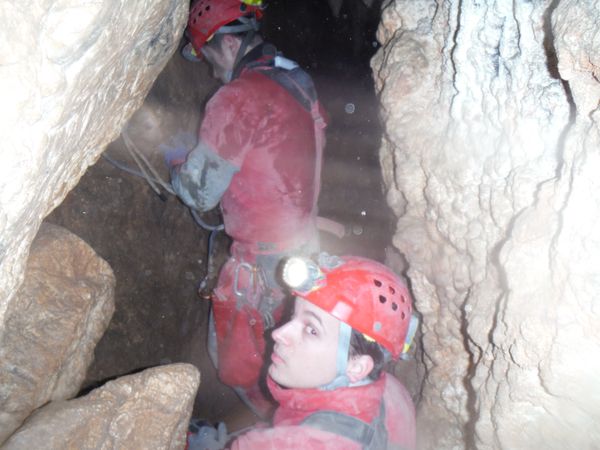 Cedo la fotocamere a Matilde che si sfoga bersagliando tutto il gruppo. Io per primo, mentre me la dormicchio nella seconda “strettoia” aspettando che Simone termini l’armo del pozzo, il quarto.