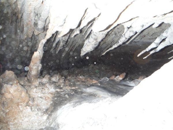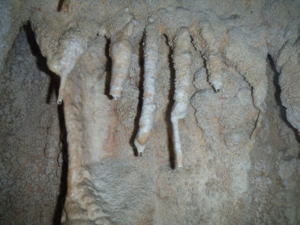 Riprendo possesso della fotocamera e la faccio riprendere dal ciclone Matilde con una foto a questa simpatica fila di stalattiti con goccia.