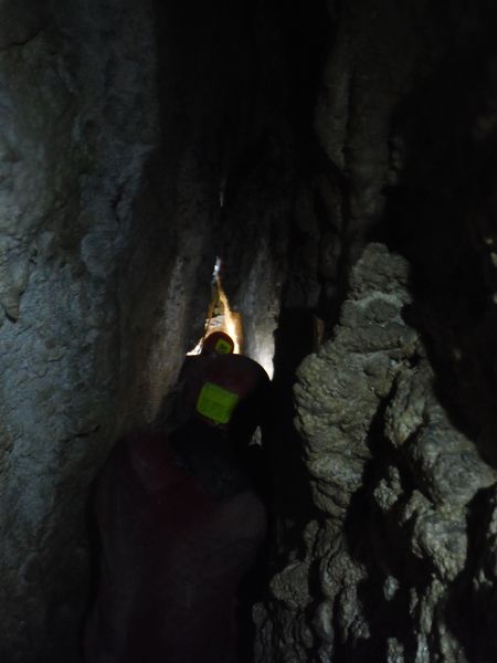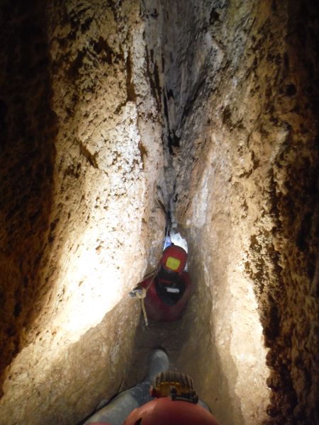 Una veduta panoramica della strettoia. Matilde, l’unica in grado di passarla, e’ gia’ dall’altra parte per aiutarci.
