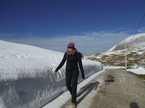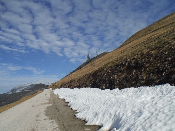Strada facendo, a Costacciaro (o era Sigillo?), recuperiamo Mauro. Tommaso lo sentiamo al telefono, si e’ svegliato solo ora e ci raggiungera’ quanto prima direttamente alla grotta. Strada salendo iniziamo a vedere dei preoccupanti accumuli di neve ma per il momento la strada e’ tranquillamente transitabile.