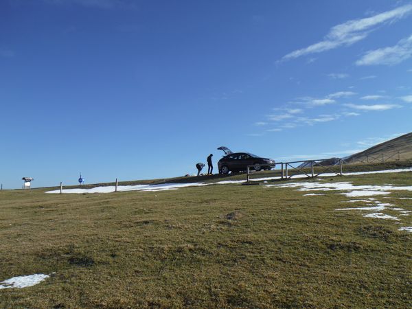 Eccoci arrivati al prato poco prima del parcheggio, ci accoglie nuovamente il vento freddo.