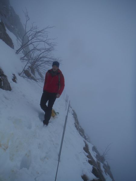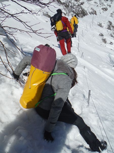Anche qua la neve cede sotto i piedi senza preavviso alcuno, ecco Vins che si appresta ad uno scivolone.