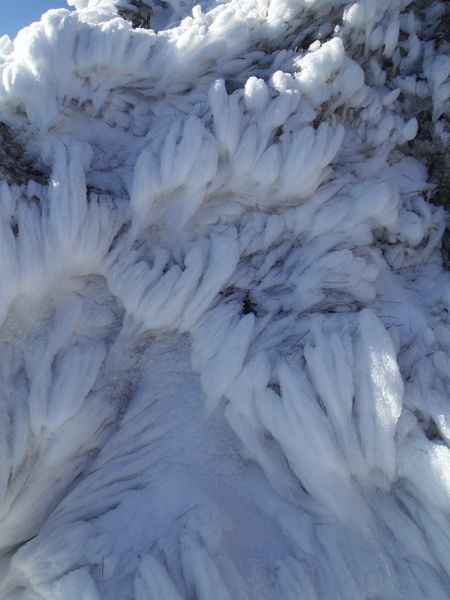 La neve a bordo strada e’ modellata dal vento in bellissime forme.