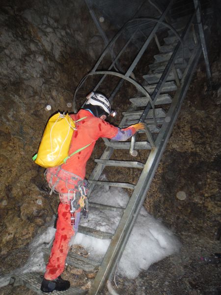 Eccoci scesi. Queste sono le scale che permettono di fare agevolmente il primo pozzo.