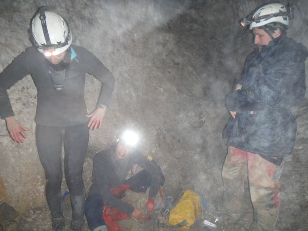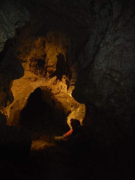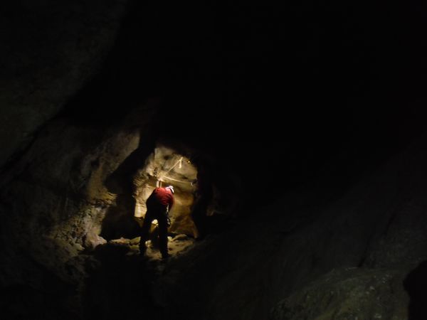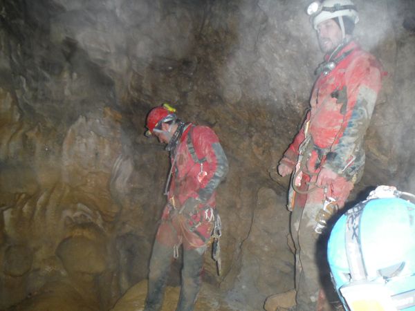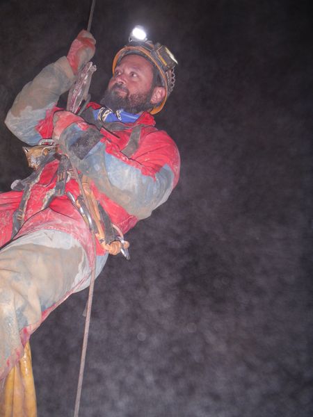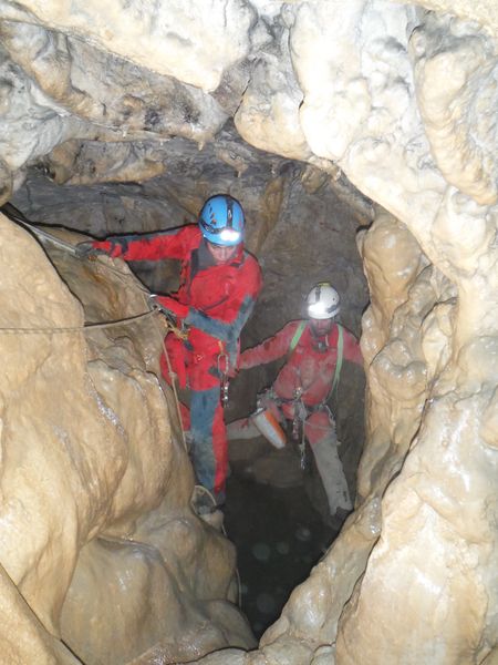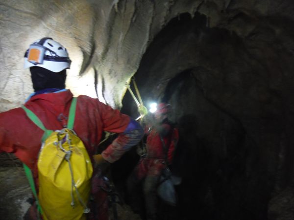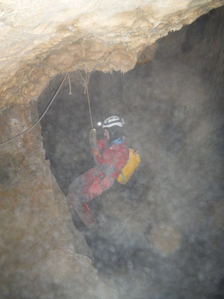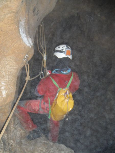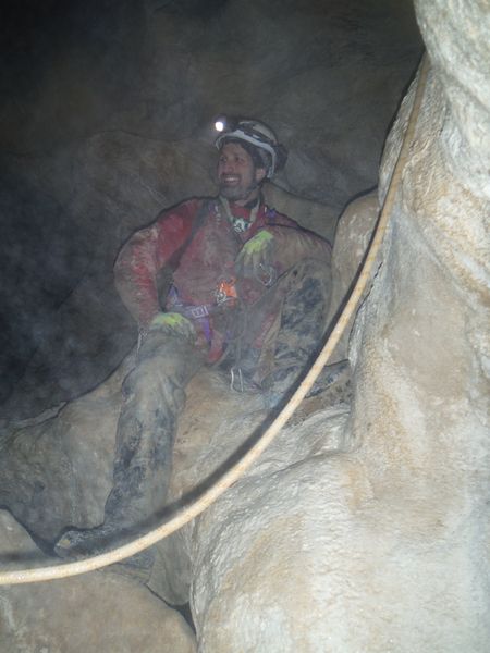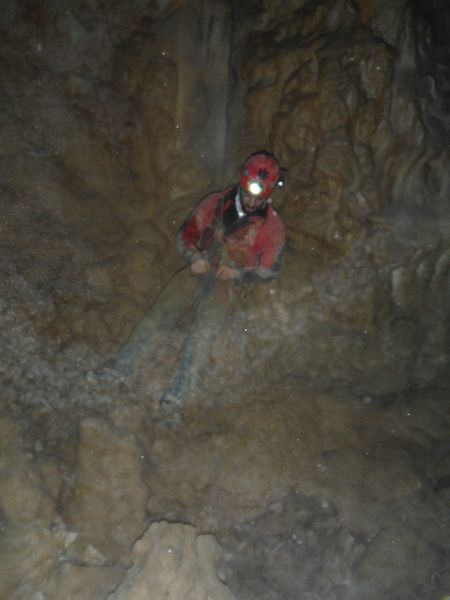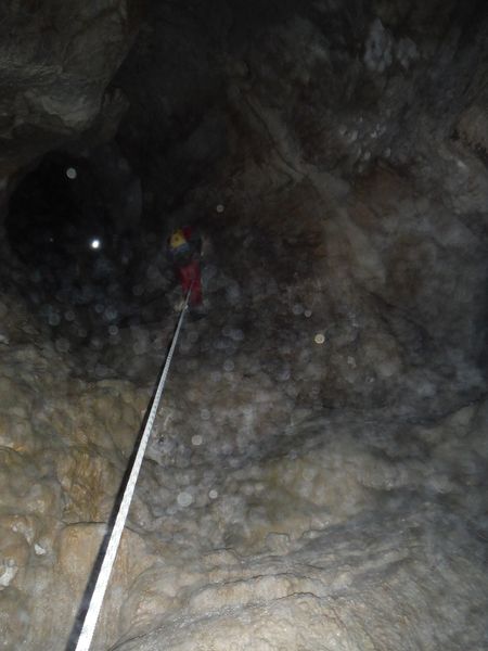 Mi sono fatto spiegare piu’ di una volta il tratto di grotta che abbiamo fatto, spero di aver capito bene. Dopo il pozzo Terni abbiamo percorso una bassa galleria in discesa, buona parte procedendo carponi. Siamo arrivati al pozzo Perugia e lo abbiamo sceso procedendo poi verso il Baratro. In vista del Baratro abbiamo deviato per i Rami Sinistri facendo una serie di piccoli pozzi fino ad incontrare nuovamente il Baratro, ma molto piu’ in basso. Abbiamo sceso il Baratro per gli ultimi 30 metri e siamo arrivati alle prime propaggini del Salone Saracco. A questo punto, il tempo tiranno ci ha costretti ad interrompere la bella gita in questa meravigliosa grotta. Ora, arrivati alle foto dopo il pozzo Terni, devo confessare di essermi perso, non riesco ad associare le foto ad un punto specifico della grotta quindi vi mostro alcune foto del percorso fatto senza troppi commenti!