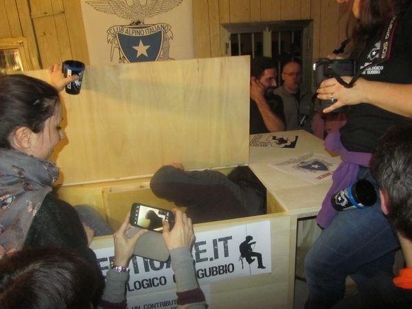 L’interno del fessurometro e’ ispezionabile per rifocillare ed immortalare gli strettoisti a meta’ percorso.
