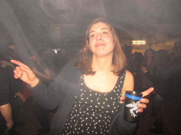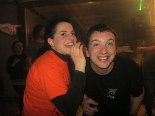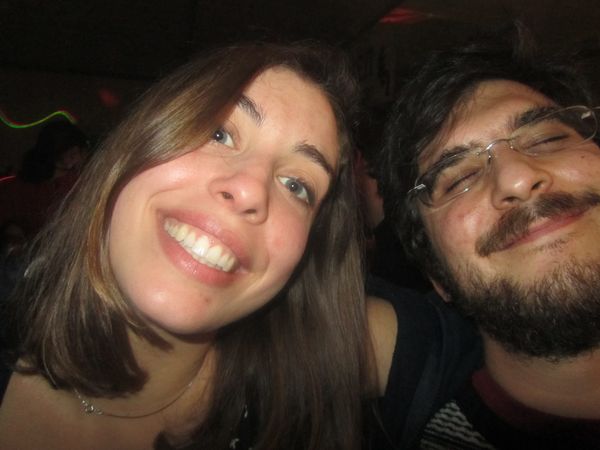 La musica e’ talmente alta che ci si intende solo parlandosi all’orecchio