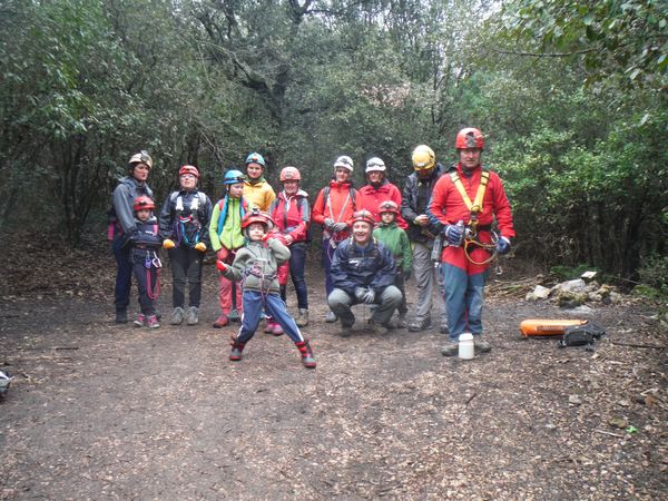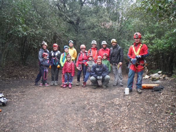 Terminato il pranzo, come deciso, prendiamo la via del ritorno. I nostri giovani esploratori oramai hanno preso dimestichezza e bisogna tenerli perche’ non ci scappino via per conto loro. Riesco a radunarli solo un momento per una foto sul tratto di galleria vicino all’uscita.
