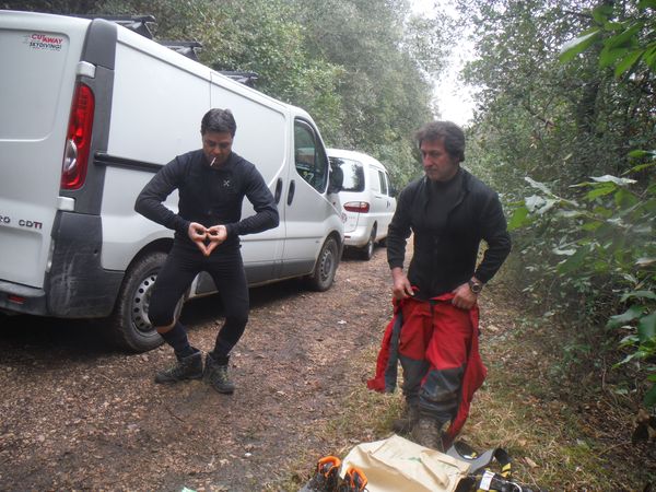 Nonostante le nostre assicurazioni gli interessati non sembrano convintissimi. Questo e’ il punto di non ritorno, se anche uno solo si impunta ora la nostra uscita in grotta finisce ingloriosamente.