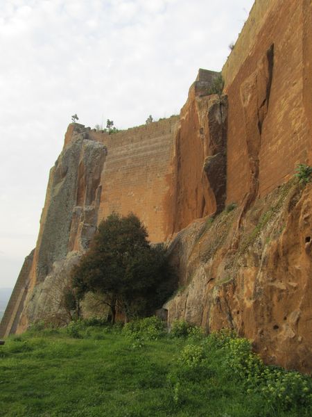 Simone strada facendo mi rende edotto sui monumentali lavori di consolidamento che sono stati fatti sul massiccio di tufo che si integra e completa le mura, molto interessante.