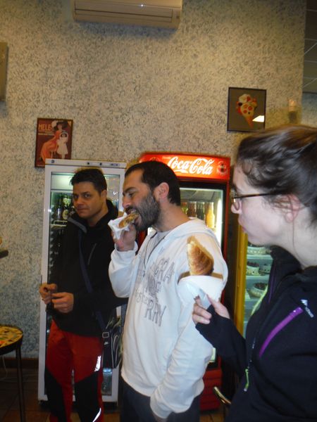 Un capannello spontaneo per uno spuntino al volo con i grissini offerti da Simone.