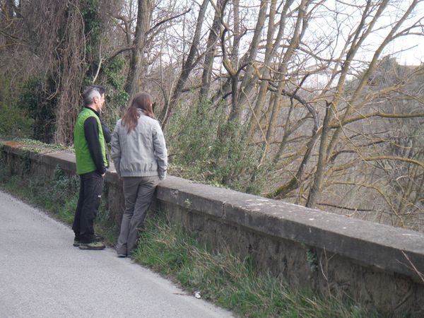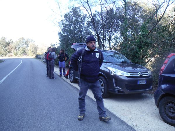 Ho appena terminato la distruzione della ciambella quando arriva Claudio con il resto della banda. Ci presentiamo e poi anche loro si dedicano alla doverosa colazione. Una volta fatto il nostro dovere partiamo nuovamente per la penultima tappa, Montebuono, dove abbandoneremo Betta e Luna. Formiamo una rispettabile coda di ben 5 macchine, entriamo trionfalmente in paese andando a parcheggiare nella piazzetta con l’ottimo Roby Bar dove faccio un salto per un doveroso saluto. Anche qui, tra una cosa e l’altra impieghiamo una mezz’ora prima di ricompattarci e ripartire ma alla fine ce la facciamo. Abbraccio la mia dolce meta’ e fuggiamo prima che Luna comprenda che la sto abbandonando. Pochi minuti di strada e siamo finalmente a destino. Parcheggiamo nello spiazzetto a fianco strada poco prima del ponte sulla strada per Calvi.