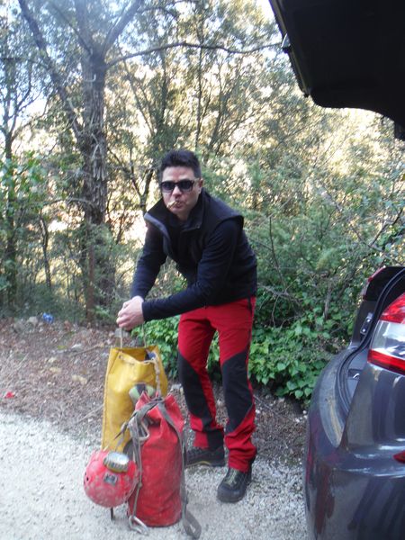 Fabrizio e’ pronto per la breve scarpinata fino al grottone.