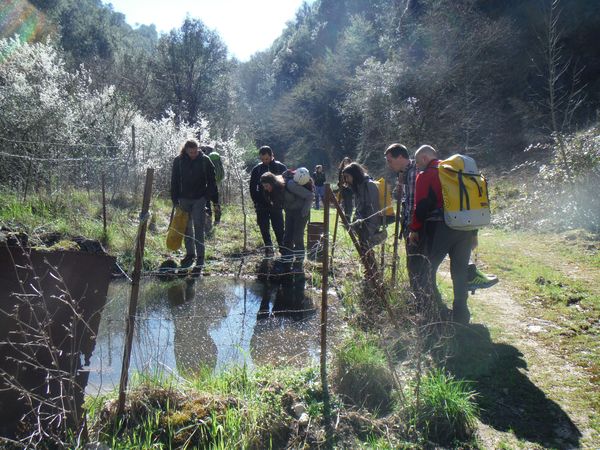 Partiamo decisi e compatti, passiamo la sbarra e proseguiamo per il sentiero. Una breve sosta alla pozza per ammirare i girini che brulicano nell’acqua verdognola. Il sole e’ piacevole e fa apprezzare la sosta.