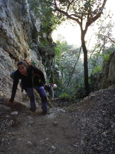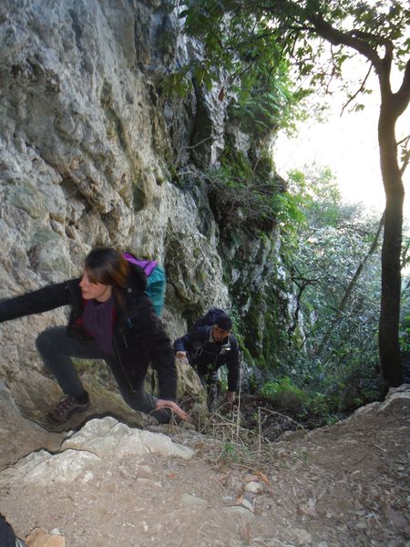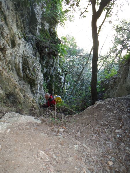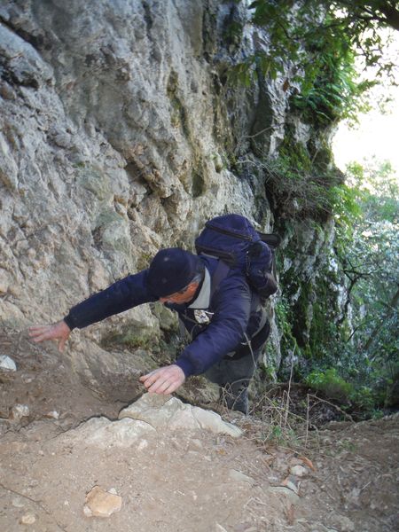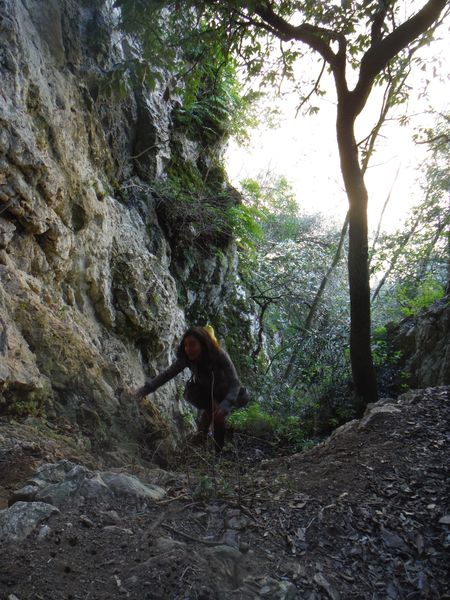 Il percorso fino al grottone e’ breve ma non avevo informato i miei amici della pettata finale. Per fortuna sono tutti tosti e decisi quindi non se ne impressionano. La affrontiamo di buon passo ed un po’ di fiatone. Quando arrivo, recupero la fotocamera per immortalare l’arrivo di ognuno. Inizio con Michele, mi e’ stato talmente incollato per tutta la salita che non faccio a tempo a scattargli la foto prima che arrivi. Eccolo fresco come una rosa.