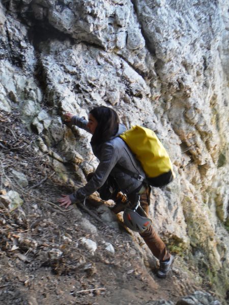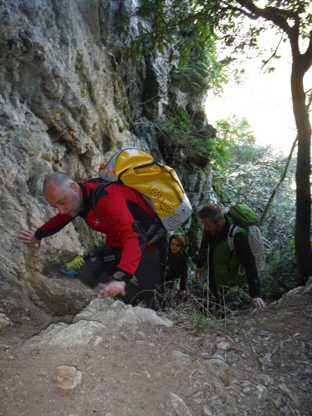 Lo segue Valerio, sempre attento alla sicurezza, si sofferma a mettere in sicurezza un sassone che rischia di cadere.