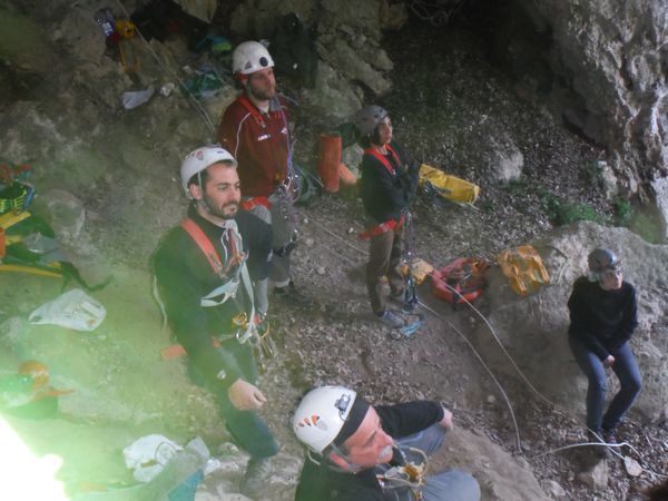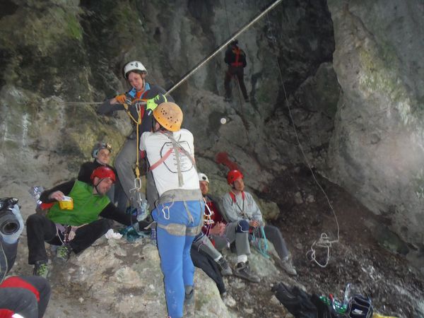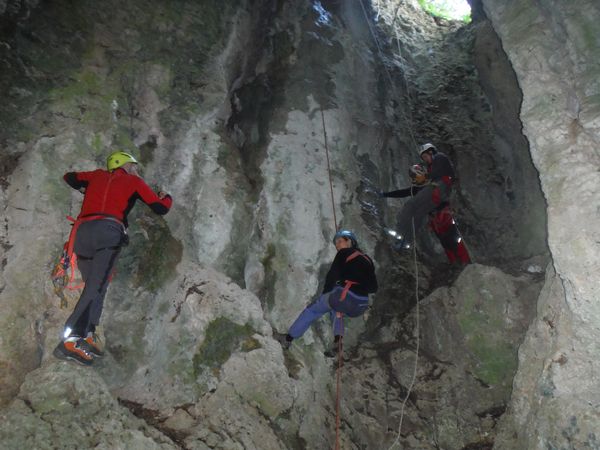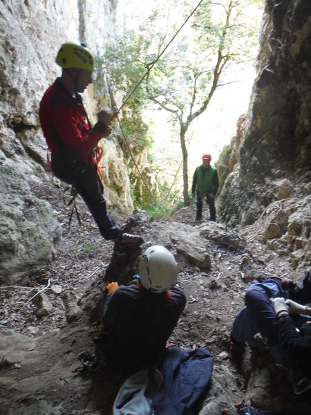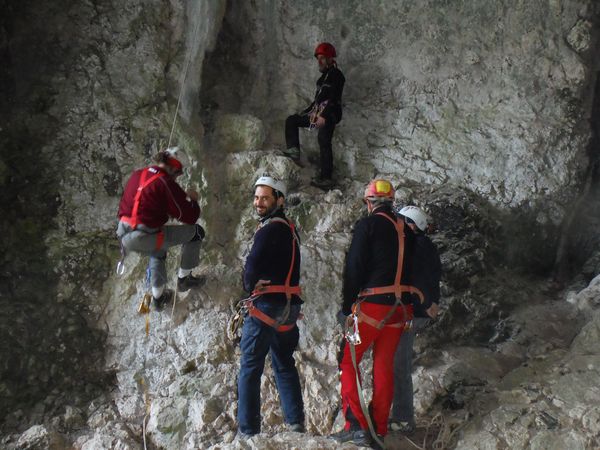 I nostri neofiti intanto continuano ad esercitarsi. Oramai sembrano padroneggiare la attrezzatura speleo.