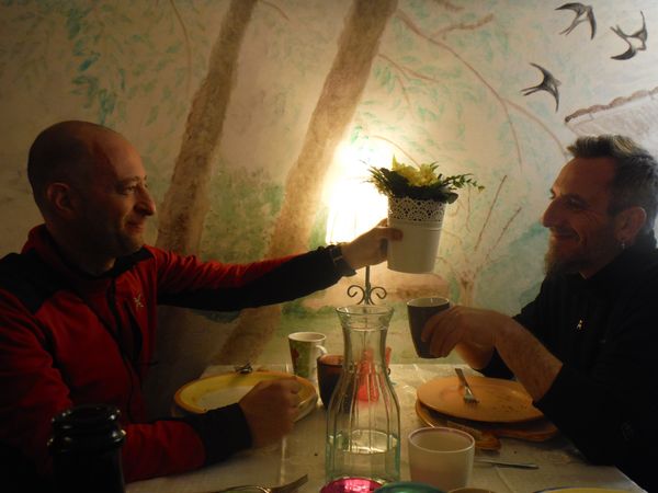 Terminato lo spiegone sul discensore a otto consultiamo l’orologio. Si e’ fatta l’ora di sbaraccare e riprendere la strada per le macchine. Dobbiamo essere pronti in tempo per andare a cena tutti assieme!