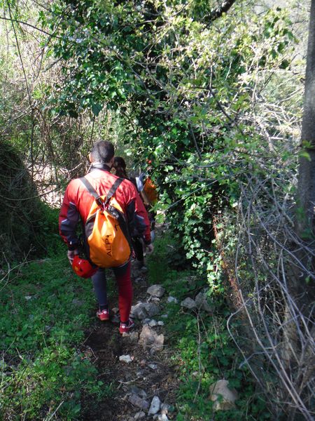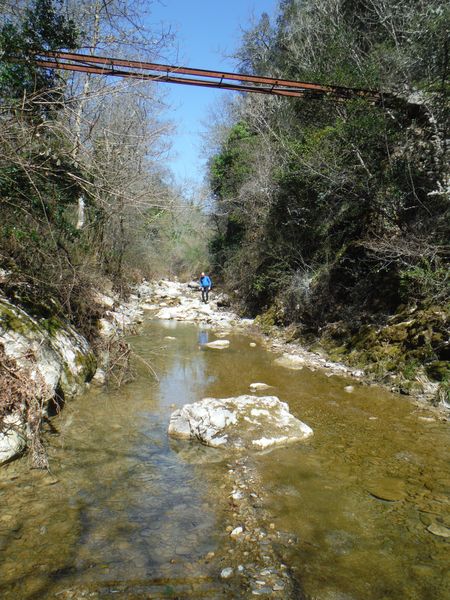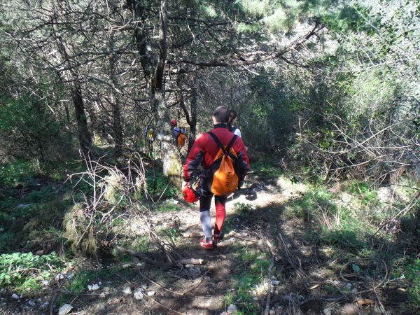 Appena vedo spuntare Matilde dalla vegetazione parto di nuovo di buon passo. Voglio riscaldarmi un po’ dopo tutto il freddo patito in forra. Raggiungo Massimo e Claudio e ci fermiamo a far chiacchiera per prendere fiato ed attendere Mat&Mik.