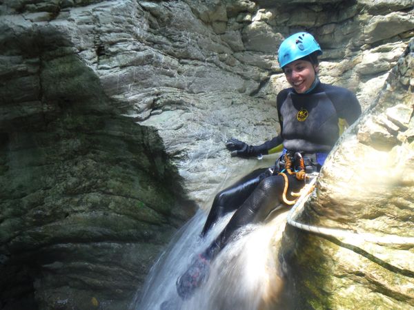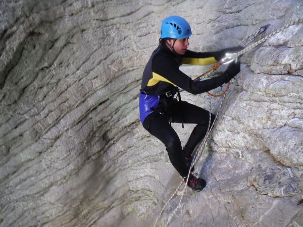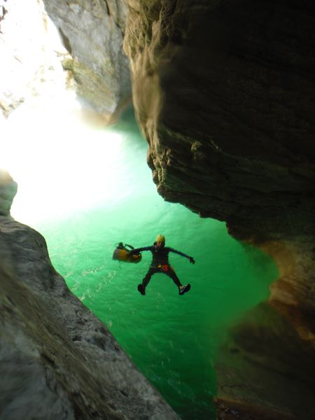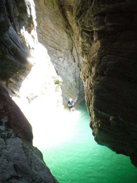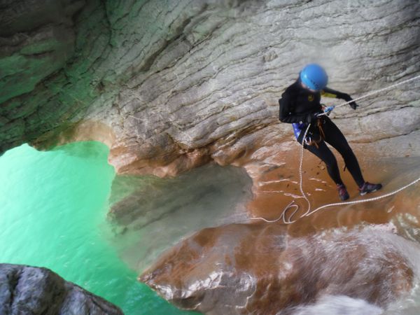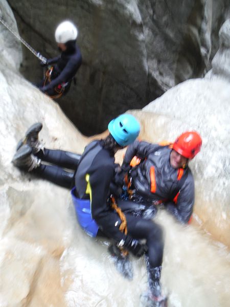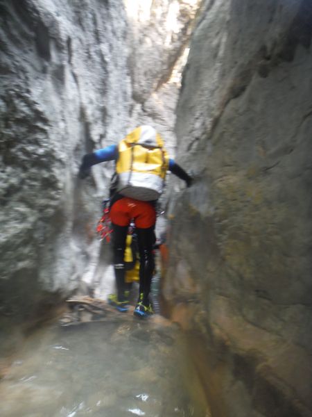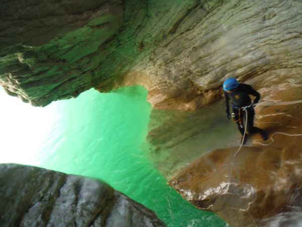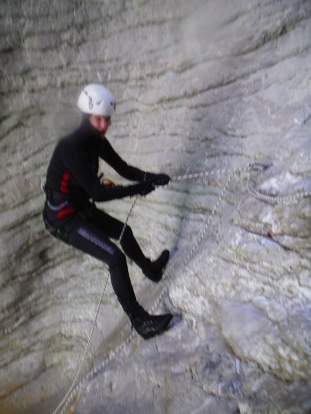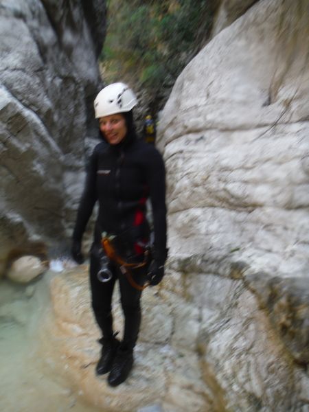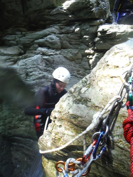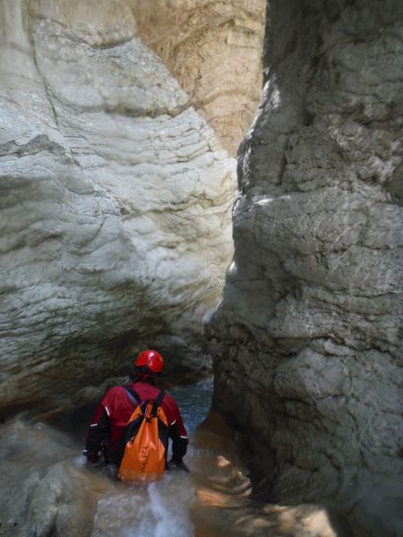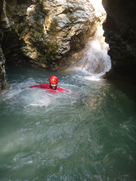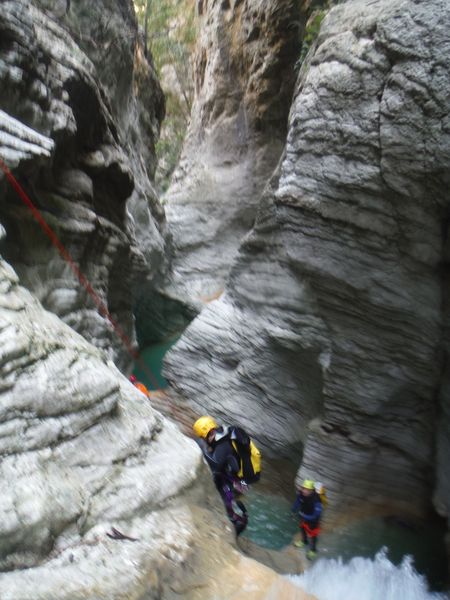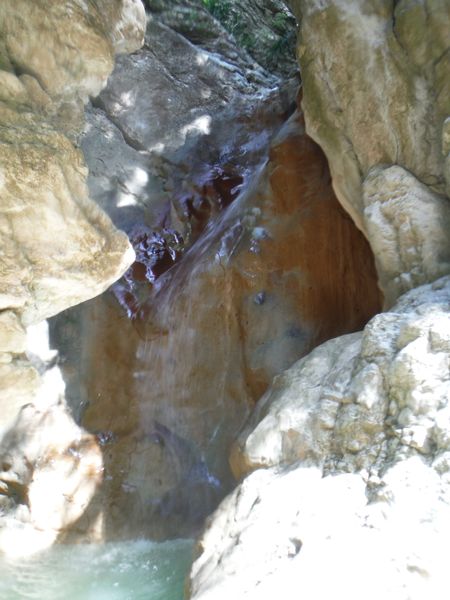 Proseguiamo senza fretta fino al salto successivo. Forse il piu’ alto di tutta la forra. Dell’altro gruppo avanti a noi nemmeno l’ombra, ci rivedremo per pochi secondi solo poco prima del termine della forra. Fabrizio si appresta a scendere.
